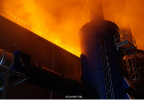 Solar panels on the roof and compressed air tanks inside the building made fire fighting harder.