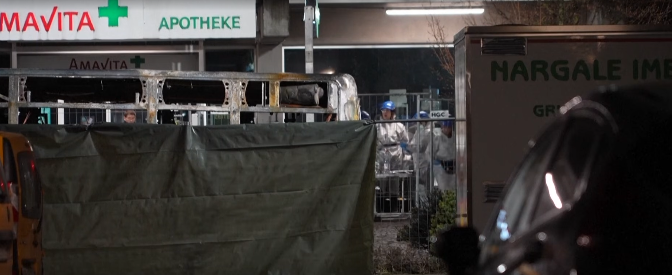 The fire broke out at around 6:25 PM on a bus traveling through the main street of Kerzers, a small town about 20 km west of the Swiss capital Bern.